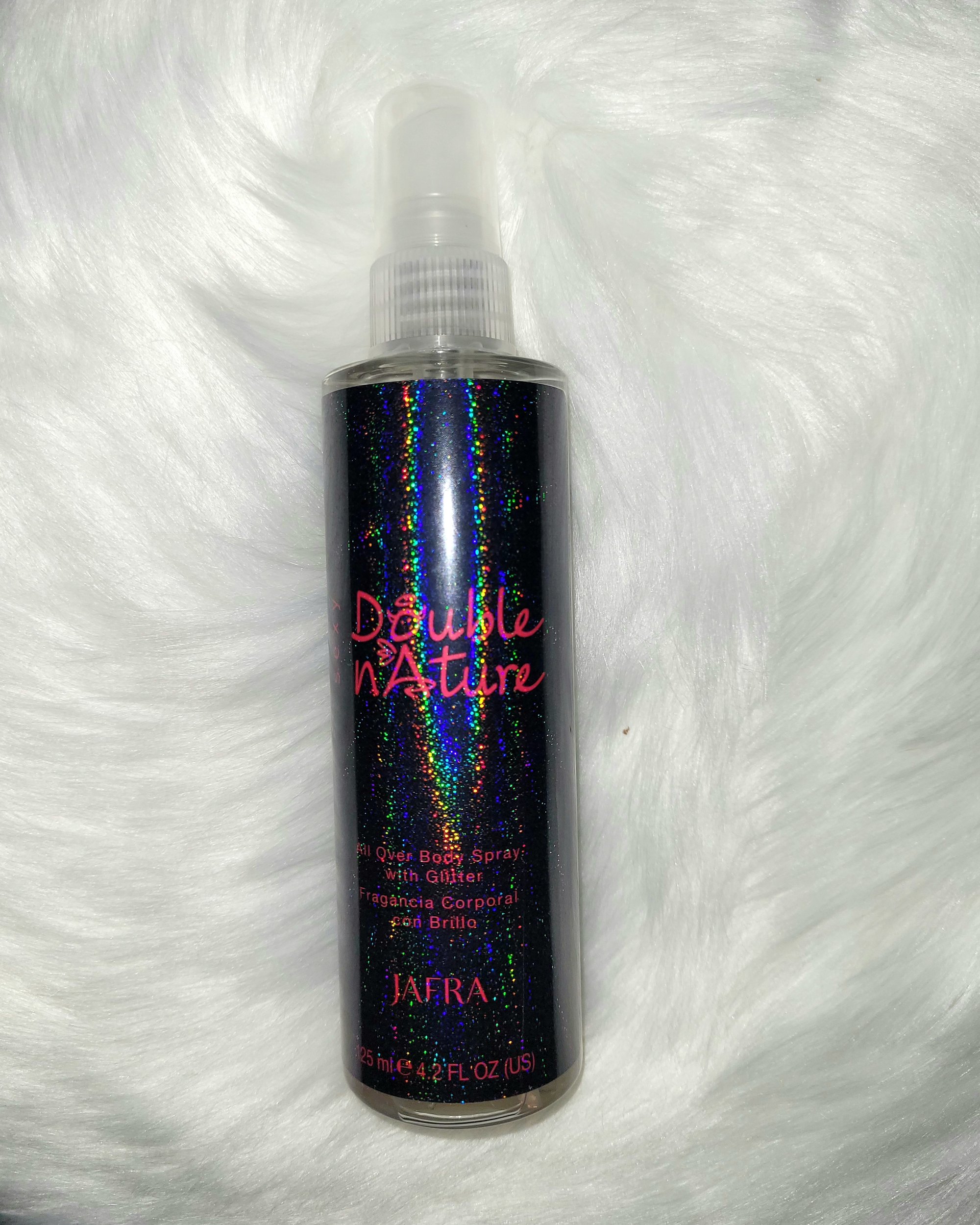 Double Nature Sexy Body Mist is a 4.2-ounce spray. Its top notes are white peach, its middle notes are hibiscus flower, and its base notes are sugarcane.
