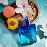 This fragrance spray is a blend of fresh nectarine and calming white vetiver, wrapped around an exotic Caribbean accord and crafted with tiare flower. It will transport you to a realm of turquoise water, golden shores, and unlimited relaxation. This fragrance is crafted with alcohol derived from sugarcane, features the How2Recycleยฎ label, and is cruelty-free.